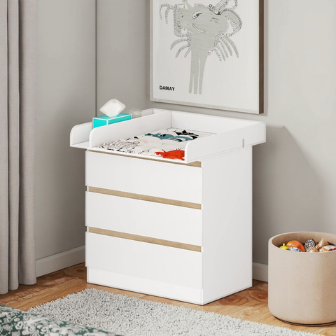 Commode blanche élégante pour enfants Bien avec armoires à 3 tiroirs à hauteur variable confortable